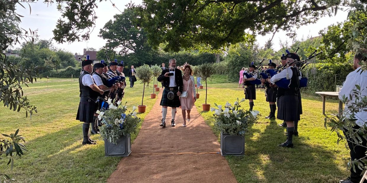 “We hired the Wiltshire Caledonia Pipe Band for our garden wedding in Dorset in June 2025.